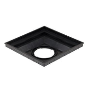 Square Low-Profile Adapter used with an 18 in. catch basin grate drains heavy flows from lawns, landscaped areas, under downspouts, patios, and walkways. Polystyrene adapter connects to a variety of drain pipes sizes—from 3 in. to 8 in.—using designated outlet adapter (sold separately).