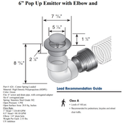 Essential to every drainage system is a point of release to prevent back-up issues. Use the Pop-Up Drainage Emitter to safely discharge collected water away from structures, erosion-prone landscapes, and poor drainage areas. The Pop-Up Drainage Emitter with Elbow and Adapter connects to 6 in. drain pipes. When water pressure builds, the cover “pops up” as high as 1 in. to release water at up to 88 GPM. Cover closes automatically once the flow diminishes. Cover is made of polyethylene and the elbow is made of polyvinyl chloride.