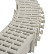 Install drainage around curved edges such as around patios, fountains, pools, and spas with ease using the patented Qwik-Turn™ Deep Radius Coupling. Works with the 5 in. Pro Series™ Channel Deep Profile Drain to collect surface water runoff. While creating angled turns with traditional straight channel drains require measuring, sawing, and mitering pieces together, the Qwik-Turn Coupling with tongue-and-groove ends are easy to connect into place and rotate up to six degrees horizontally while remaining locked vertically. Couplings can also connect to each other for tighter curves.