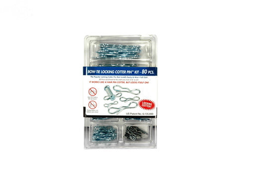 Pivot Point Bow Tie Locking Cotter Pin Kit 80 piece kit contains 7 different Bow-Tie Cotters that fit shafts from 3/16" to 3/4" diameter. Push or p...