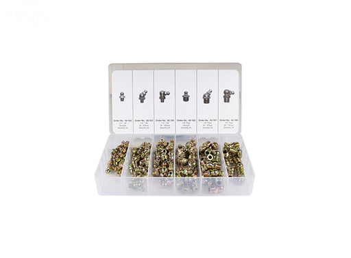 View full detailsGrease Fitting Assortment Kit Contains (130) Pieces. Order No. Qty. Description163 30 Straight 1/4" - 28164 ...