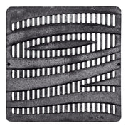 Give your outdoor drainage an elegant look with the heavy-duty cast iron 12 in. Decorative Drain Grate with wave design. Sturdy and stylish, the grate drain features a pattern of waves that function as grate openings, draining away stormwater while blocking leaves and debris from entering and clogging the drainage system. The 12 in. Square Catch Basin Grate with decorative wave design drains moderate flows from lawns, landscaped areas, patios, walkways, and under downspouts. Made of heavy-duty cast iron, it will form a protective iron-oxide patina over time. NDS iron drain grates are lightly painted black to inhibit rust formation during shipping and storage.
